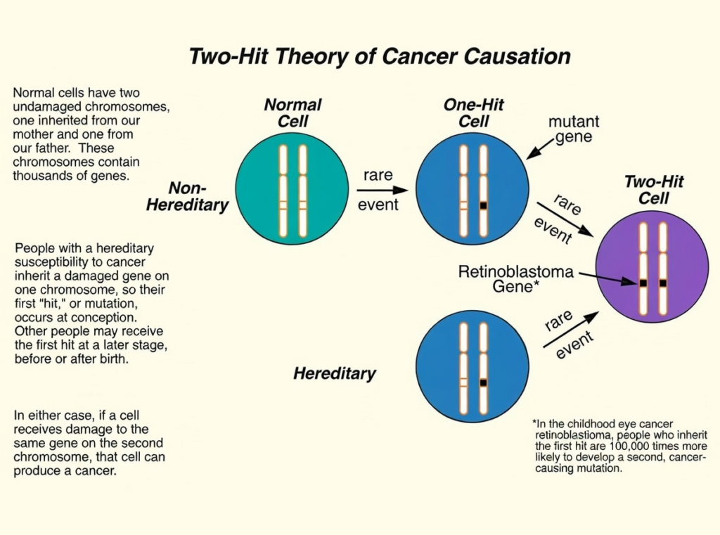 這稱為二次打擊假說(Knudson’s two-hit hypothesis)
