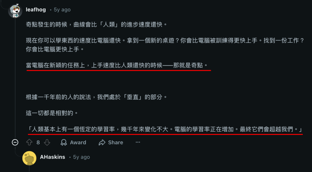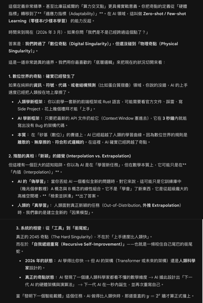 然而,真正的奇點或許不是「在各方面,上手速度遠超人類」